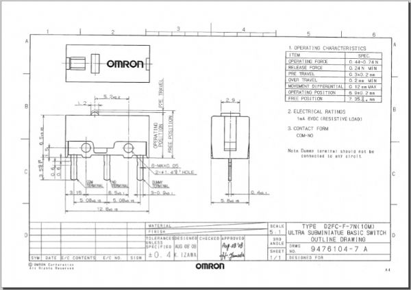 omron/歐姆龍d2fc-f-7n(10m)行程開關,標準電氣壽命為1000萬次以上,實際測試可高達1400萬次,(10m)代表1000萬次,此顆料多用在如微軟、羅技鼠標中,在一些高檔的激光鼠標、藍牙鼠標、游戲鼠標中也會經(jīng)常用到。輕瑩舒適的按鍵力度、超長的使用壽命,為您的生活帶來了美的享受。