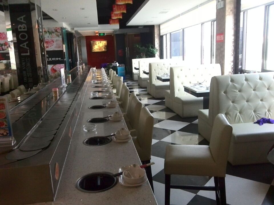 臺下墻裙的裝飾材料可選擇防火板,不銹鋼板、馬賽克、鋁塑板等等。其設(shè)備可根據(jù)店鋪使用面積及客戶要求進行設(shè)計各種形狀。自助回轉(zhuǎn)火鍋輸送設(shè)備,采用304不銹鋼和進口電器元件,