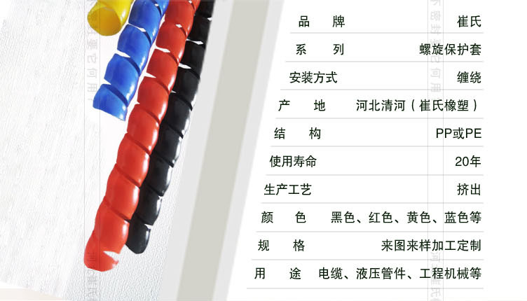 螺旋保護(hù)套 多色電壓、液壓管件、工程機(jī)械密封條