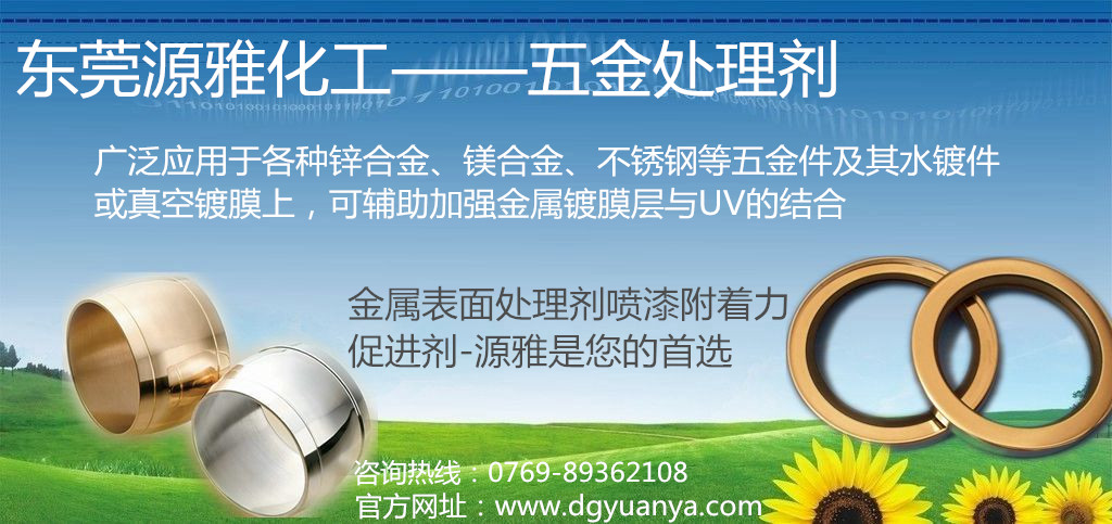 五金處理劑應(yīng)用于增強(qiáng)uv金屬的附著力,起承上啟下作用, 使其鉸鏈上底材和uv,達(dá)到附著。廣泛應(yīng)用于各種鋅合金、鎂合金、不銹鋼等五金件及其水鍍件或真空鍍膜上,可輔助加強(qiáng)金屬鍍膜層與uv的結(jié)合,同時(shí)和大部分的常用溶劑型樹脂有良好的親和力,是一款得到市場(chǎng)廣泛認(rèn)可的常用型處理劑。