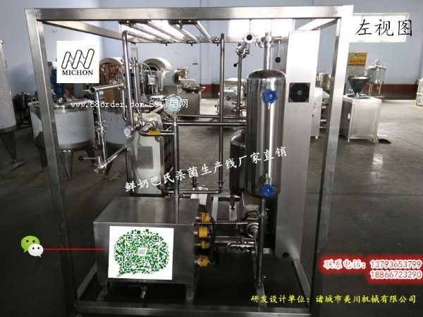 牛奶巴氏殺菌流水線,諸城市美川機械有限公司專業(yè)從事研發(fā)設(shè)計牛奶巴氏殺菌流水線等乳品殺菌設(shè)備,該設(shè)備適應(yīng)于牧場及小型加工中心進行店面配送,設(shè)備采用先進的板式殺菌方式對鮮奶乳進行快速殺菌、降溫的方式進行降溫,每小時可處理鮮奶乳1噸(產(chǎn)量可以無限降低),大大節(jié)省了電能的消耗,真正有效地實現(xiàn)節(jié)約能源。