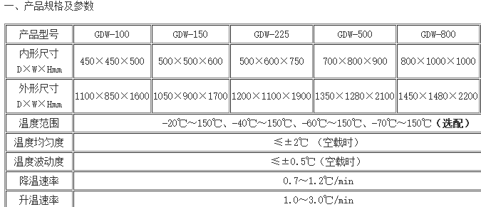 gdw系列高低溫試驗箱+型號選擇