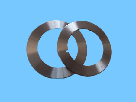 分切刀片主要用于紙張、膠帶、磁帶、薄膜、金、銀、 銅、鋁、汰合金箔等物品的縱切和橫切。這些高檔的金屬箔材的分切要 求精度高,無毛刺、無壓痕現(xiàn)象,所以分切的難度較大,那么對 縱切、橫切的刀具精度要求較高,切斷阻力最小,耐磨性最大, 刃口鋒利持久。針對這一難題,我公司引進(jìn)了國際上最先進(jìn)的數(shù) 控磨床,井聘請刀具技術(shù)專家,經(jīng)過了長期研究開發(fā)替代進(jìn)口高 精度微米級縱切刀片。井應(yīng)用了高科技技術(shù),將刀片進(jìn)行陶瓷復(fù) 合及刀片表面碳化鎢鍍層處理、這樣刀片在分切時(shí),不易磨損而 且也不帖粉沫,減少了分切時(shí)的摩擦力,解決了這一難題,大大 提高了分切精度和速度,井延長了刀具的使用壽命。