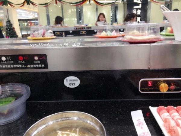 鏈板及鏈條均采用304磨沙面沖壓而成,板厚1.8mm,寬度140mm,鏈條節(jié)距100mm,鏈條下部分導(dǎo)軌面板采用304銹鋼鏡面,板厚度為1.2mm,內(nèi)部采用白色防摩尼龍墊條,旋轉(zhuǎn)吧臺,壽司料理,旋轉(zhuǎn)火鍋,自助火鍋餐廳。