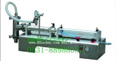 工作原理:該沈陽灌裝機為皮管自吸式灌裝,將皮管放入物料儲存桶,在氣缸拉動活塞桿的作用下,物料經(jīng)由自吸管、三通下止回閥進入計量缸體,再由氣缸推動活塞將物料推出,物料經(jīng)由三通上止回閥、皮管、灌裝頭進入容器,通過磁控開關控制氣缸的行程決定灌裝量的多少。