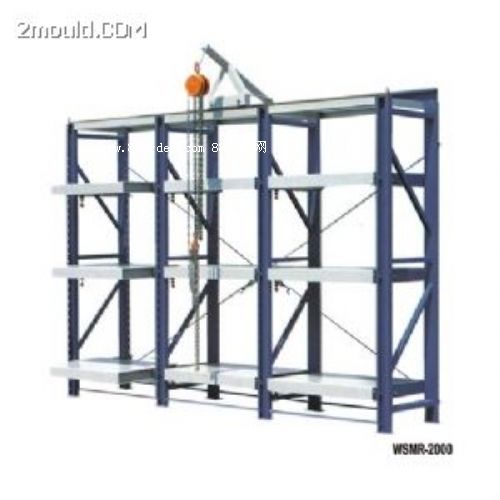 模具架類別 1. 模具架分為:a.標(biāo)準(zhǔn)型;b.帶天車型;c.重型;d.全開式;e.滑板式;f.伸收式. 2. 可根據(jù)客戶要求非標(biāo)訂做. 模具架技術(shù)參數(shù) 規(guī)格:l3100*d600*h2000mm(3格*4層=12抽板) 無限長 承重:800-1000kg/每抽屜板,整體承重可達(dá)到9.6-12t 材質(zhì):立柱采用10#槽鋼;拉桿采為40*40方通;抽板底架采用50*50角鐵;面板為厚2.5mm鋼板;滑槽采用4mm鋼板折槽;軸承采用進(jìn)口6404型 拉出:抽屜板可拉出65% 顏色:環(huán)保綠(默認(rèn)) 備注:標(biāo)準(zhǔn)承重型模具架長度不是只能做到3100mm,只是一般做成3格(l3100mm)為一組模具架,實(shí)際使用中可以做到任意長度,這個(gè)過程勿需加多人工、材料或是工藝,只是簡單的把做好的立柱一個(gè)接一個(gè)的排列連接起來即可。