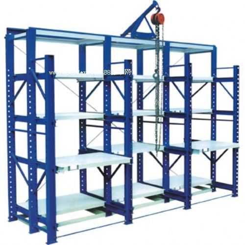 模具架類別 1. 模具架分為:a.標(biāo)準(zhǔn)型;b.帶天車型;c.重型;d.全開式;e.滑板式;f.伸收式. 2. 可根據(jù)客戶要求非標(biāo)訂做. 模具架技術(shù)參數(shù) 規(guī)格:l3100*d600*h2000mm(3格*4層=12抽板) 無限長 承重:800-1000kg/每抽屜板,整體承重可達(dá)到9.6-12t 材質(zhì):立柱采用10#槽鋼;拉桿采為40*40方通;抽板底架采用50*50角鐵;面板為厚2.5mm鋼板;滑槽采用4mm鋼板折槽;軸承采用進(jìn)口6404型 拉出:抽屜板可拉出65% 顏色:環(huán)保綠(默認(rèn)) 備注:標(biāo)準(zhǔn)承重型模具架長度不是只能做到3100mm,只是一般做成3格(l3100mm)為一組模具架,實際使用中可以做到任意長度,這個過程勿需加多人工、材料或是工藝,只是簡單的把做好的立柱一個接一個的排列連接起來即可。
