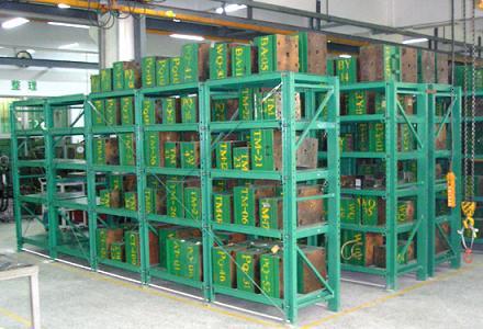 中型全開式模具架 1、每塊板承重1000-3000kg 2、抽屜拉出95% 3、三格四層規(guī)格;h2400*w1100*l3400mm 重型抽屜式模具架 每格每層承載2-3噸規(guī)格:高度h2100*w1205*l1100 長度 無限度 1.重型抽屜式模具架規(guī)格可以按照客戶要求訂做。 2.重型抽屜式模具架產(chǎn)品特征同上 3.技術(shù)參數(shù):立柱采用10#槽鋼,立柱斜杠為25*25方通 4.抽屜板支架采用40*80扁通,抽屜面板采用2.5mm鋼板 5.滑槽為6mm鋼板折彎而成 6.軸承為6404# 7.顏色客戶自定