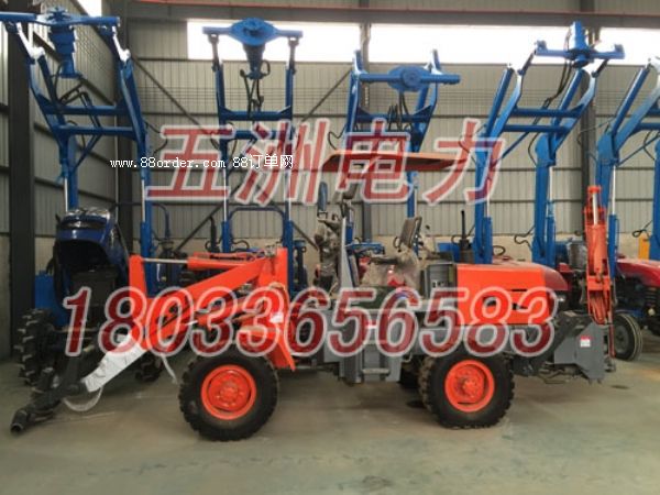 霸州市五洲電力專業(yè)生產(chǎn)挖坑機(jī) 鉆眼機(jī) 打坑機(jī) 打眼機(jī) 打洞機(jī),種類齊全,動力分別為拖拉機(jī),裝載機(jī),挖掘機(jī),吊車,鉆坑機(jī),打樁機(jī),農(nóng)村房屋改造等擁有國家7項(xiàng)國家專利,熟練的技術(shù)工人和精湛的技術(shù)水平和豐富的野外施工經(jīng)驗(yàn)。我廠生產(chǎn)的挖坑機(jī) 鉆眼機(jī) 打坑機(jī) 打眼機(jī) 打洞機(jī)應(yīng)用范圍廣,可用于電線桿挖坑,植樹,路燈桿鉆孔工程,光伏電站打樁工程,民房基礎(chǔ)打樁工程,適用于凍土層,黃土層,鵝卵石層,建筑垃圾層,砂土層等多種土層。使用范圍極廣,適用多種環(huán)境,是您施工的好幫手。挖坑機(jī) 鉆眼機(jī) 打坑機(jī) 打眼機(jī) 打洞機(jī)全國專利產(chǎn)品,打擊仿造,全國最低價格銷售38000元/套(含拖拉機(jī))產(chǎn)品質(zhì)保一年,終身維護(hù)。新型拖拉機(jī)打孔吊裝一體機(jī)系我廠自主研發(fā)的新產(chǎn)品,能打孔深度達(dá)到3-5米,直徑200mm-1000mm,打孔過程中,打孔位置可前后左右迅速調(diào)整。能吊長度達(dá)15米的電線桿。