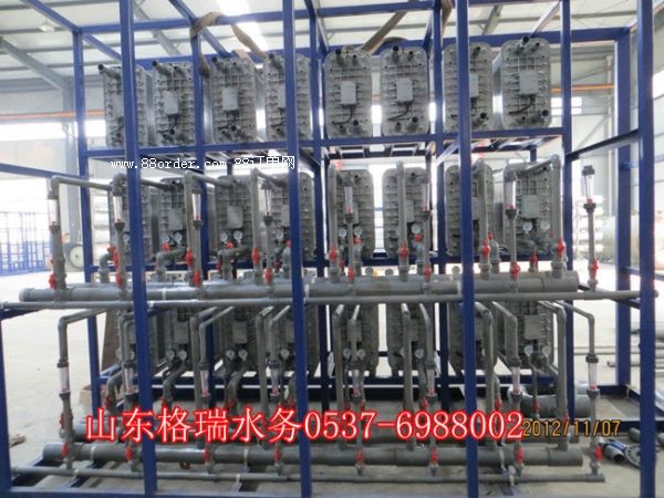 當(dāng)進(jìn)水中的 na+及 ci-等雜質(zhì)離子吸咐到相應(yīng)的離子交換樹脂上時(shí),這些雜質(zhì)離子就會(huì)發(fā)生象普通混床內(nèi)一樣的離子交換反應(yīng),并相應(yīng)地置換出 h+及 oh-。一旦在離子交換樹脂內(nèi)的雜質(zhì)離子也加入到 h+及 oh-向交換膜方向的遷移,這些離子將連續(xù)地穿過樹脂直至透過交換膜而進(jìn)入濃水室。這些雜質(zhì)離子由于相鄰隔室交換膜的阻擋作用而不能向?qū)?yīng)電極的方向進(jìn)一步地遷移,因此雜質(zhì)離子得以集中到濃水室中,然后可將這種含有雜質(zhì)離子的濃水排出膜堆。