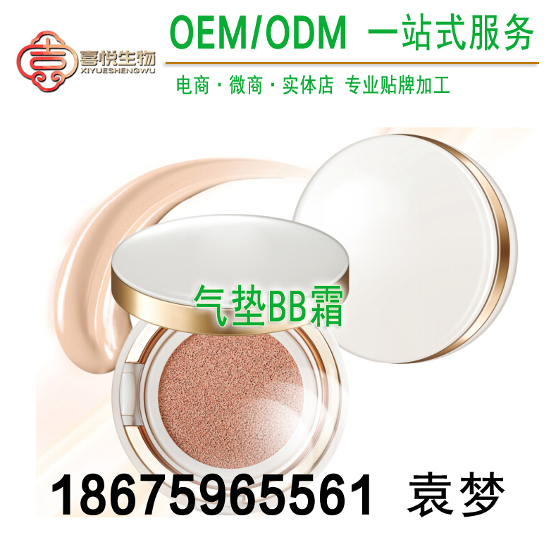 廣州喜悅專注于各類妝字號(hào)(化妝品及彩妝),消字號(hào)(日用品)研發(fā)、生產(chǎn),專業(yè)承接氣墊bb霜貼牌,出口氣墊bb霜加工,日韓流行氣墊bb霜oem,微商氣墊bb霜定制生產(chǎn),大批量氣墊bb霜出口代工。廣州大型化妝品專業(yè)貼牌加工廠,為您提供一站式全方位的服務(wù),從原料、配方、包裝等一切由廠家負(fù)責(zé),廠家代工熱線:186-7596-5561 袁經(jīng)理 qq:279-9860-952.