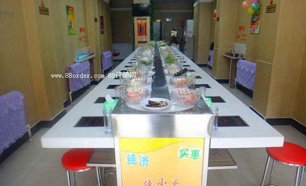 業(yè)主可根據(jù)自身情況可進(jìn)行裝修,客人用餐臺(tái)面可用大理石或?qū)嵞狙b修,設(shè)備還可根據(jù)業(yè)主餐廳布置的要求,來做不同形狀,其價(jià)格合理,外觀精美,無噪音等特點(diǎn)。旋轉(zhuǎn)小火鍋設(shè)備