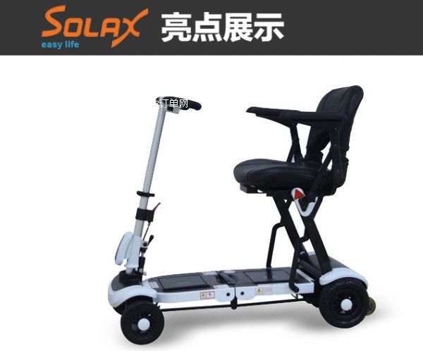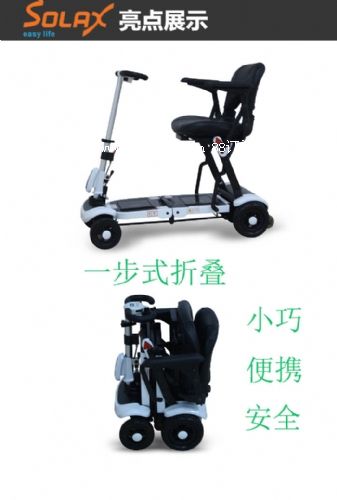深圳折疊老年代步車(chē)solax廠家直銷(xiāo),一步式折疊連動(dòng)系統(tǒng)或遙控伸縮系統(tǒng), 3秒收折/展開(kāi),輕松折疊,可放入小車(chē)后備箱。車(chē)子外觀由意大利設(shè)計(jì)團(tuán)隊(duì)設(shè)計(jì), 中世紀(jì)武士面罩型車(chē)頭凸現(xiàn)神密莊重,全國(guó)免費(fèi)熱線(xiàn)400 8928 626