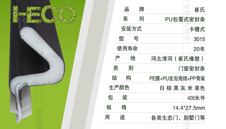 包覆式密封條,在防盜門(mén)、銅門(mén)、不銹鋼門(mén)的金屬門(mén)上的黏貼效果極佳,可適應(yīng)戶(hù)外四季溫度的變化,在操作安裝上可節(jié)省50%的生產(chǎn)效率