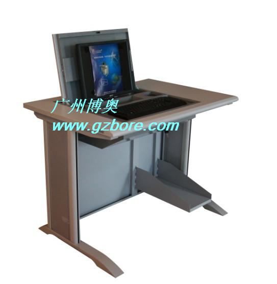 結(jié) 構(gòu):使用時只要打開鎖,液晶顯示屏便會自動翻起,鍵盤也同時自動打開。當(dāng)不使用時,可用手動按下翻蓋面板。整個翻轉(zhuǎn)器與桌面齊平,產(chǎn)品具有防塵保持桌面平整,美化桌面等功能。電腦主機(jī)位置有鎖上,可防盜,