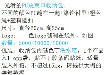 - 訂單名稱:束口袋