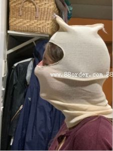 called painters sock hood 油漆工短襪罩,它是由彈性拉伸聚酯纖維(polyester)制成的。28克一個(gè)。將帽子折疊4-1/2"x3",然后一個(gè)帽子一個(gè)透明的透明熱密封塑料袋,塑料袋上印著一種顏色,黑色。然后37個(gè)再裝在一個(gè)展示盒里。展示盒是一個(gè)白色的外盒,有一個(gè)單色打印的黑色,這就是他們所說(shuō)的芯片板盒chip board box。不能起皺。展示盒上的印刷只是一種設(shè)計(jì)。