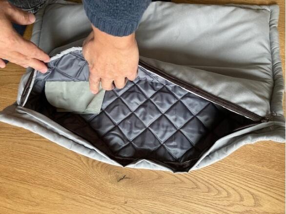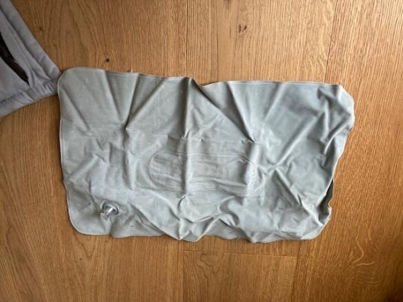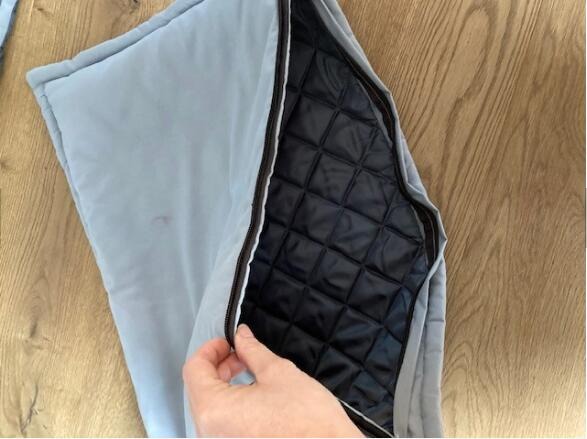 枕頭 55 x 37 cm,表面是棉的,里面有一個(gè)復(fù)合的層,如圖,再加一個(gè)充氣的枕頭,印刷一色在毯子上,一色在枕頭上